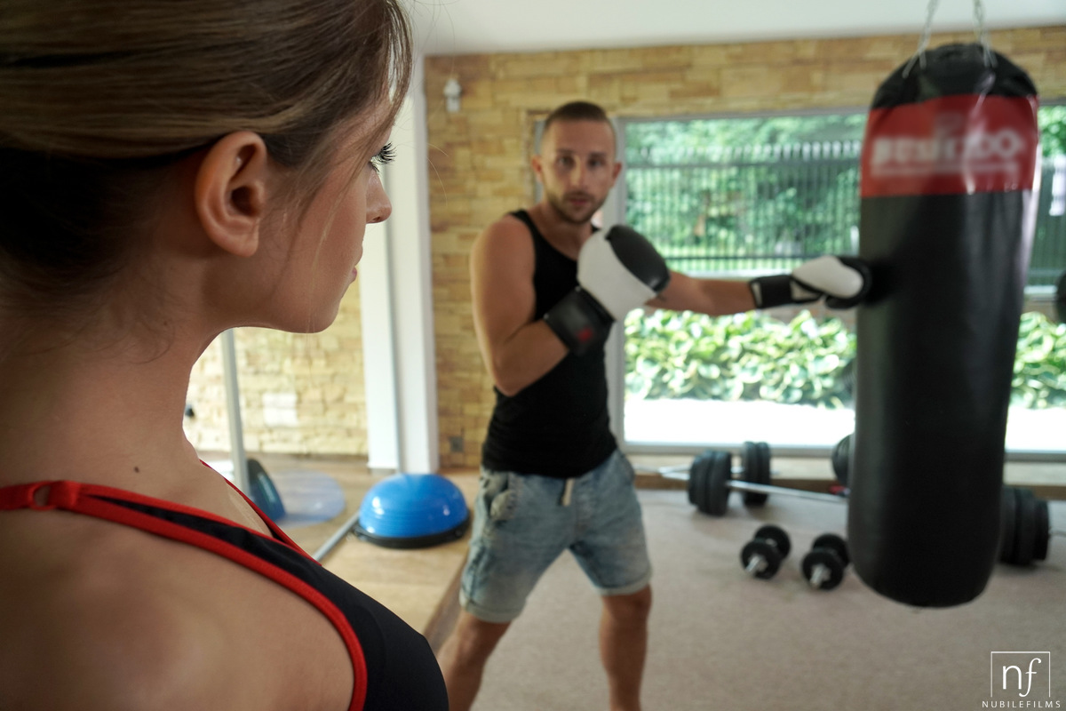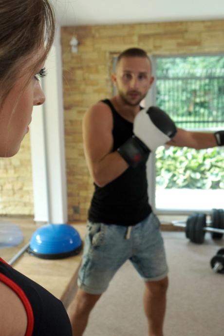 Атлетичная Ребекка Вольпетти занимается фитнесом с мужчиной после домашней тренировки