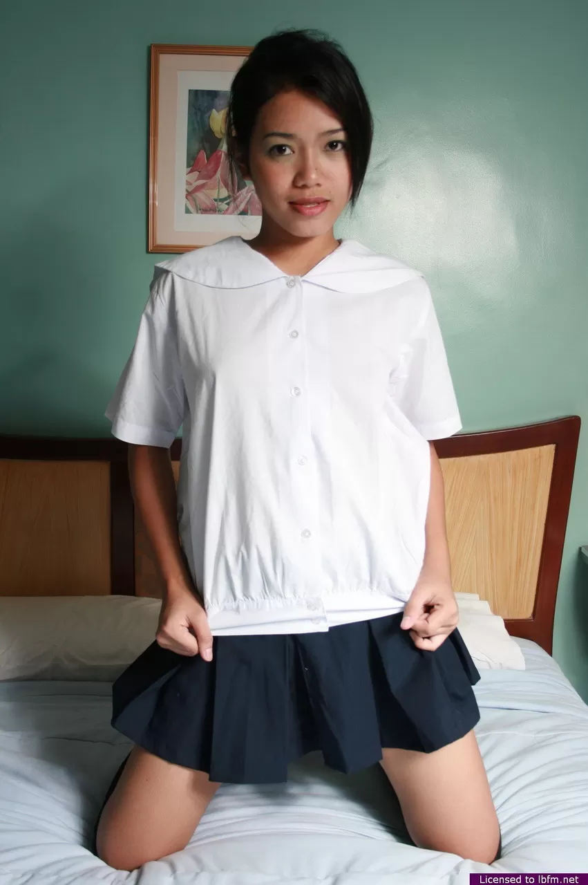 Азиатская школьница дебютирует обнаженной в черных гольфах выше колена