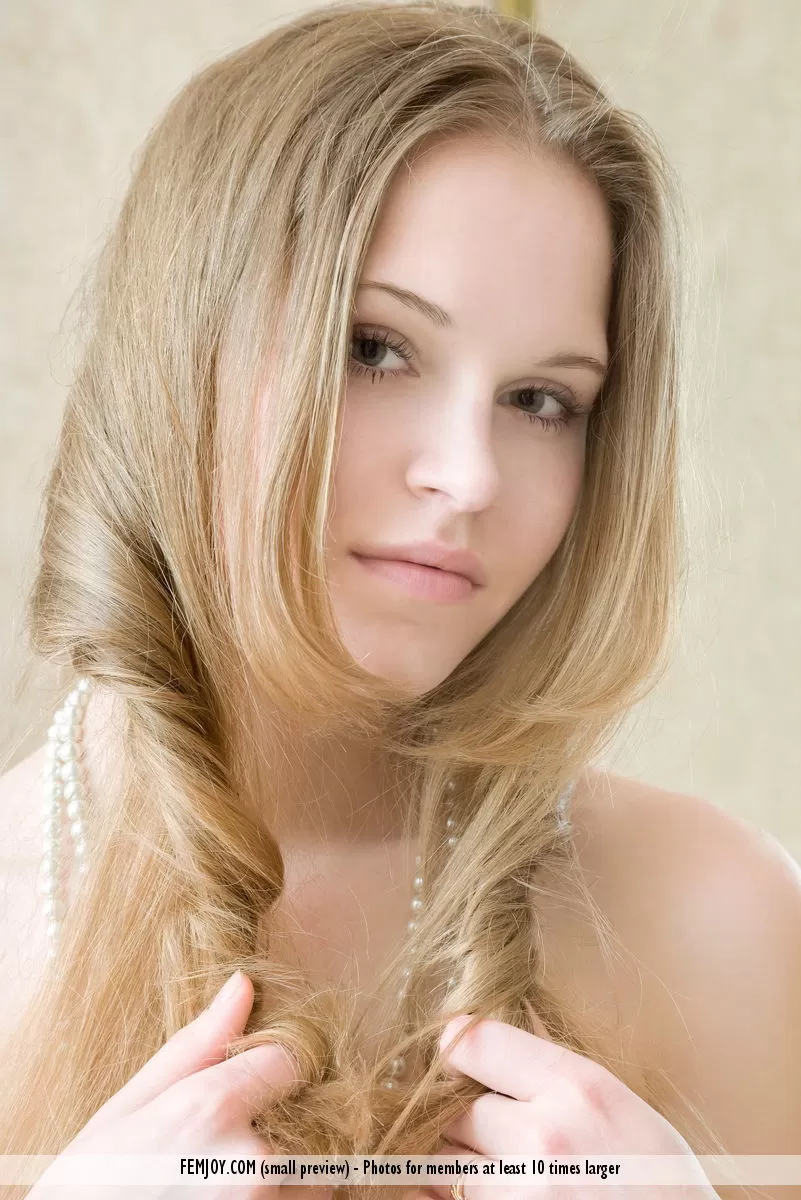 Бледная красотка Мелена Ди в белых чулках выставляет напоказ свою сладкую попку и крошечные сиськи