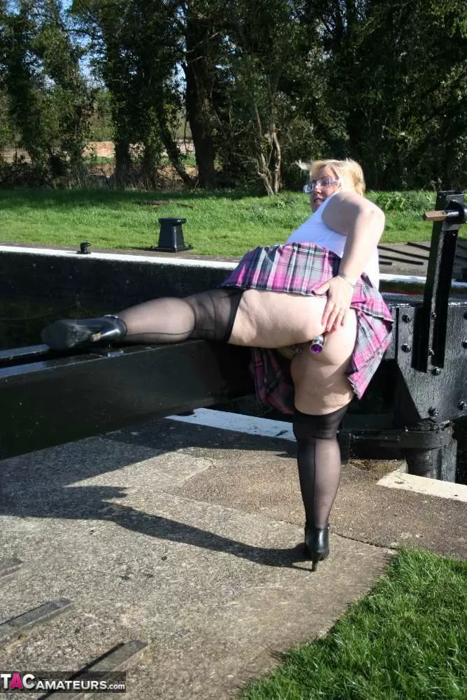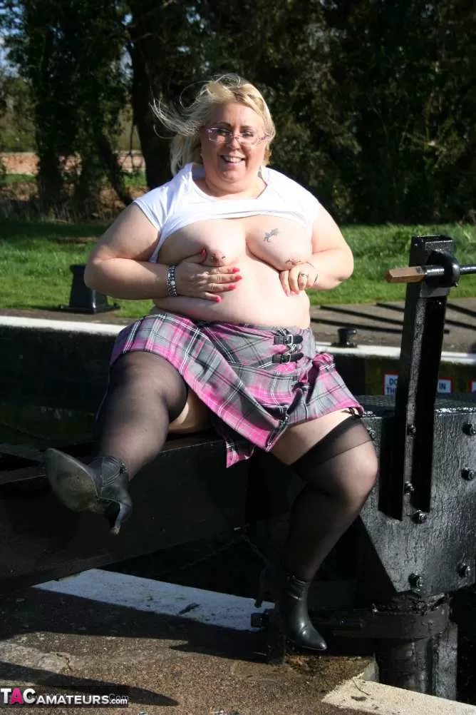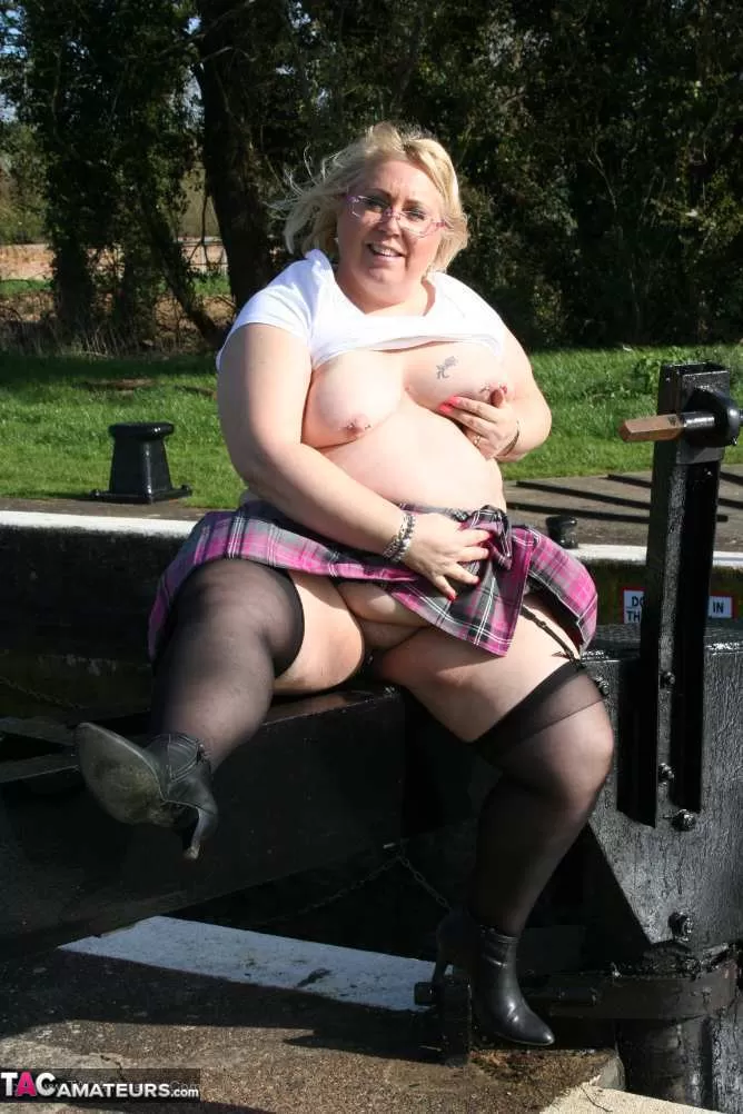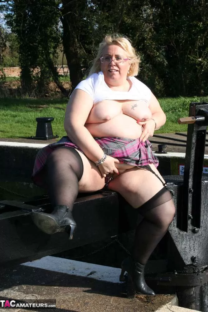 Блондинка с избыточным весом Лекси Каммингс обнажает себя, закрывая систему каналов