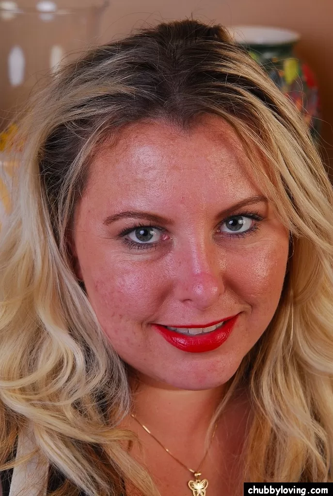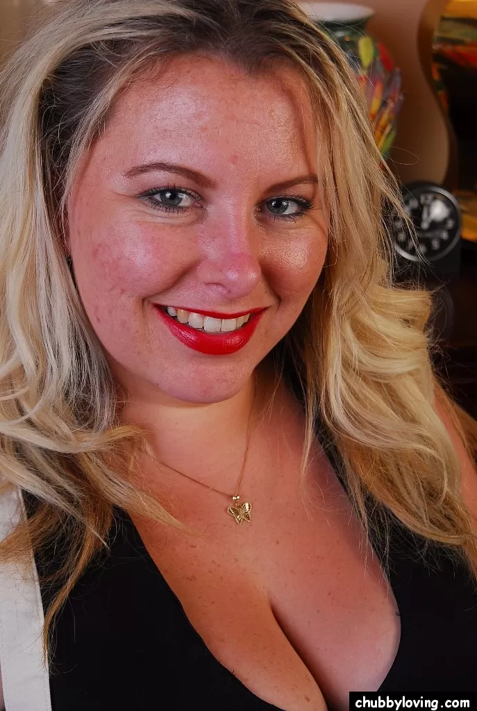 Блондинка толстушки Тони с большой грудью обнажает свои чулки и трусики