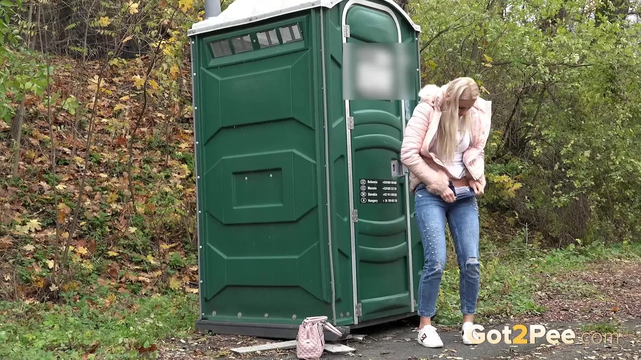 Блондинке Кэти Скай приходится сбросить джинсы и пописать на публике из-за запертого туалета