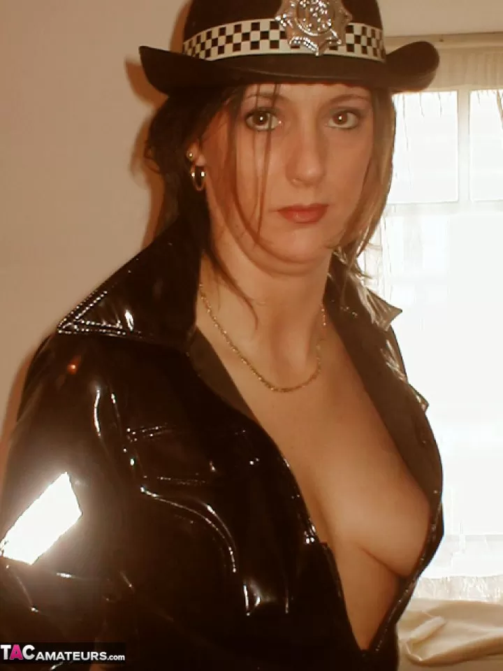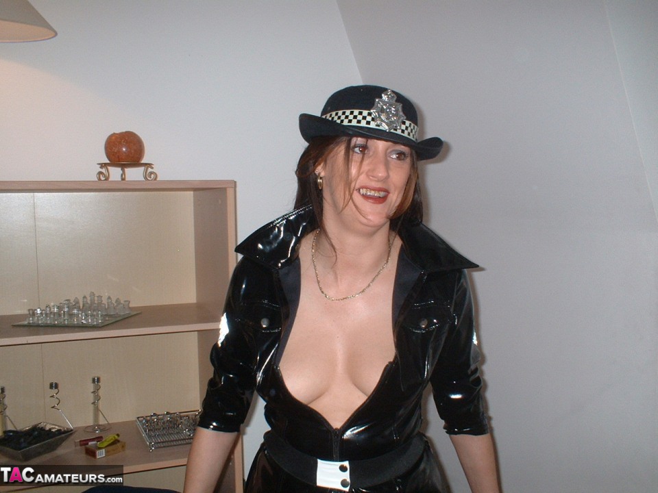 Британская любительница Джуси Джо отсасывает белые и черные члены в латексной полицейской одежде