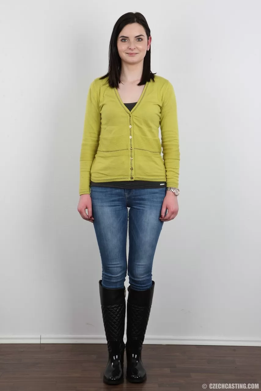 Брюнетка-любительница оживляет свою скучную жизнь, позируя в костюме для дня рождения