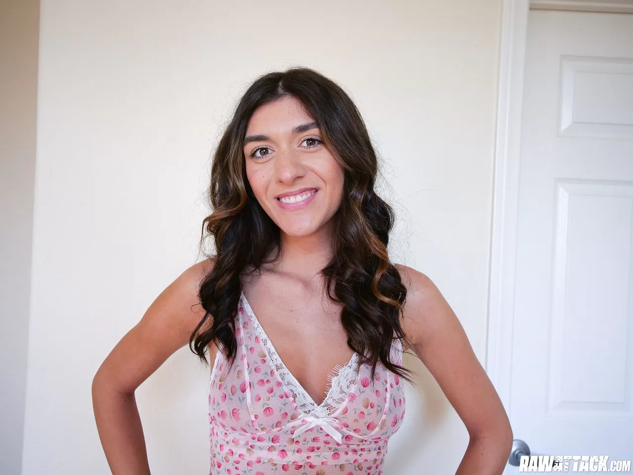 Брюнетка-новичок Обри Бэбкок моделирует бикини перед сексом от первого лица