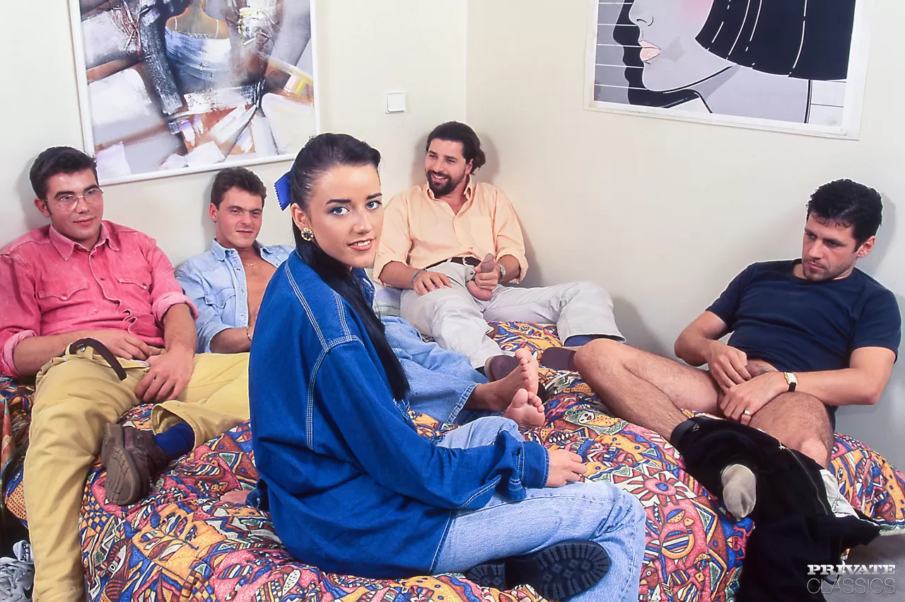 Брюнетка средних лет Кэрол Руж делает двойное проникновение во время групповухи