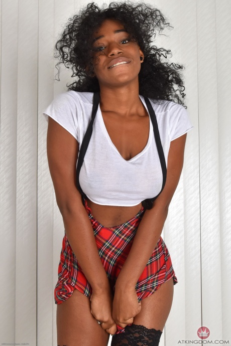 Чернокожая девушка Ри Куинн снимает свой школьный наряд, чтобы позировать обнаженной