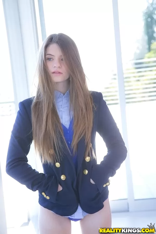 Длинноволосая милашка-подросток Элис Марч избавляется от своей униформы и трусиков