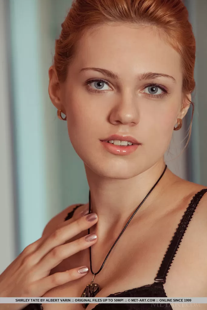 Евро-подросток Ширли Тейт снимает черное белье, чтобы продемонстрировать свою голую киску