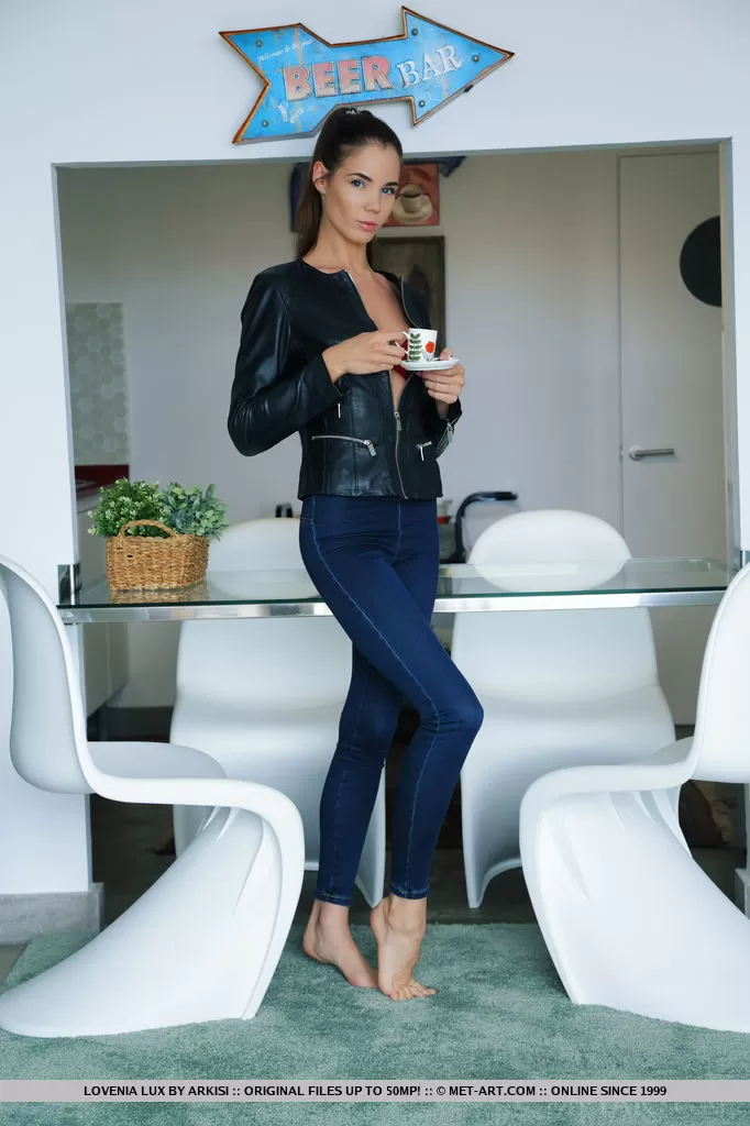 Горячая молоденькая Ловения Люкс широко раздвигает свои длинные ноги, чтобы показать свою розовую пизду