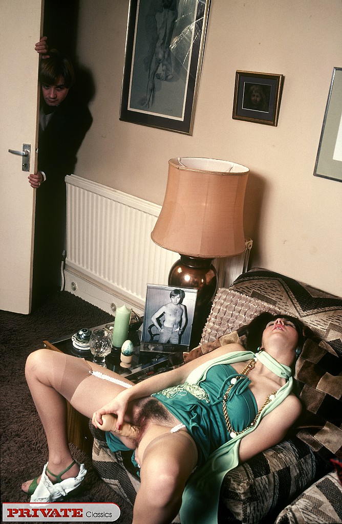 Горячая винтажная цыпочка с мохнатой пиздой наслаждается своими игрушками и твердым членом по максимуму