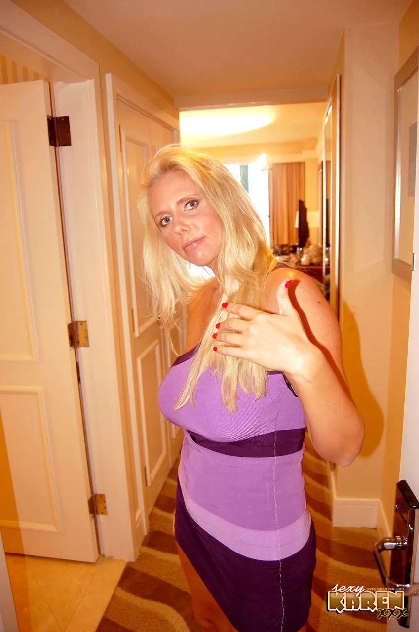 Грудастая блондинка Карен Фишер принимает участие в трахе от первого лица