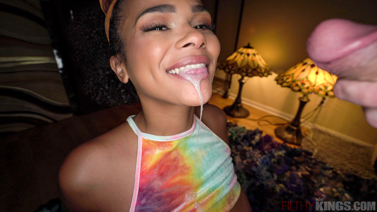 Грудастая негритянка Алина Али выплескивает сперму изо рта, отсасывая большой член