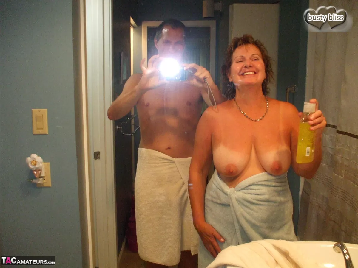 Грудастая пожилая леди Busty Bliss занимается оральным сексом со своим другом мужчиной