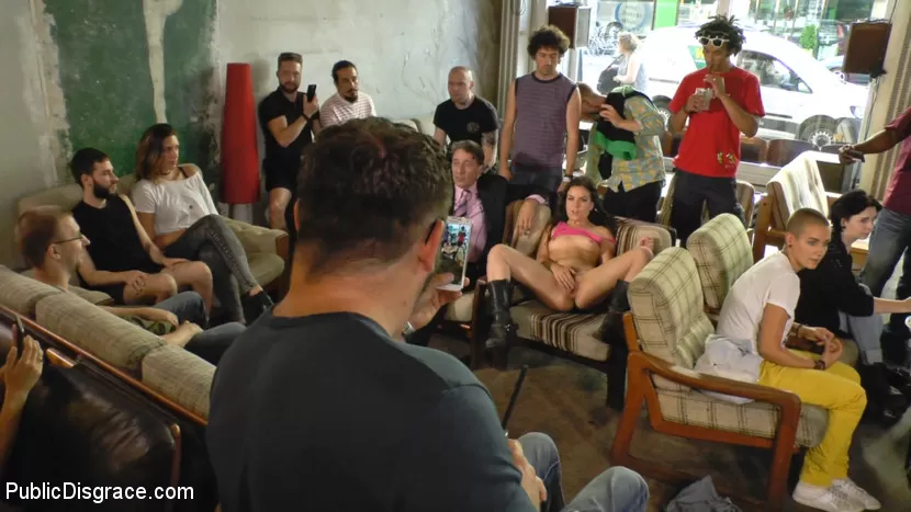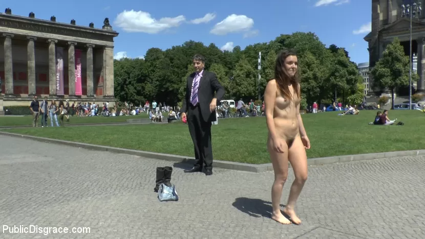 Кавказская девушка прогуливается обнаженной по площади, прежде чем заняться сексом на публике