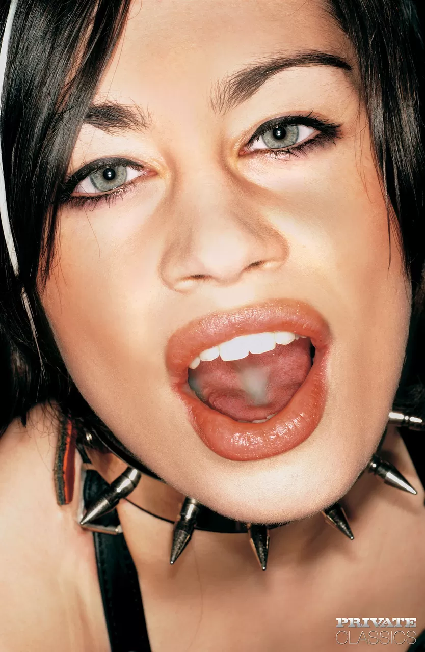 Королева фетиша Мерседес высасывает сперму из презерватива в остроконечном ошейнике