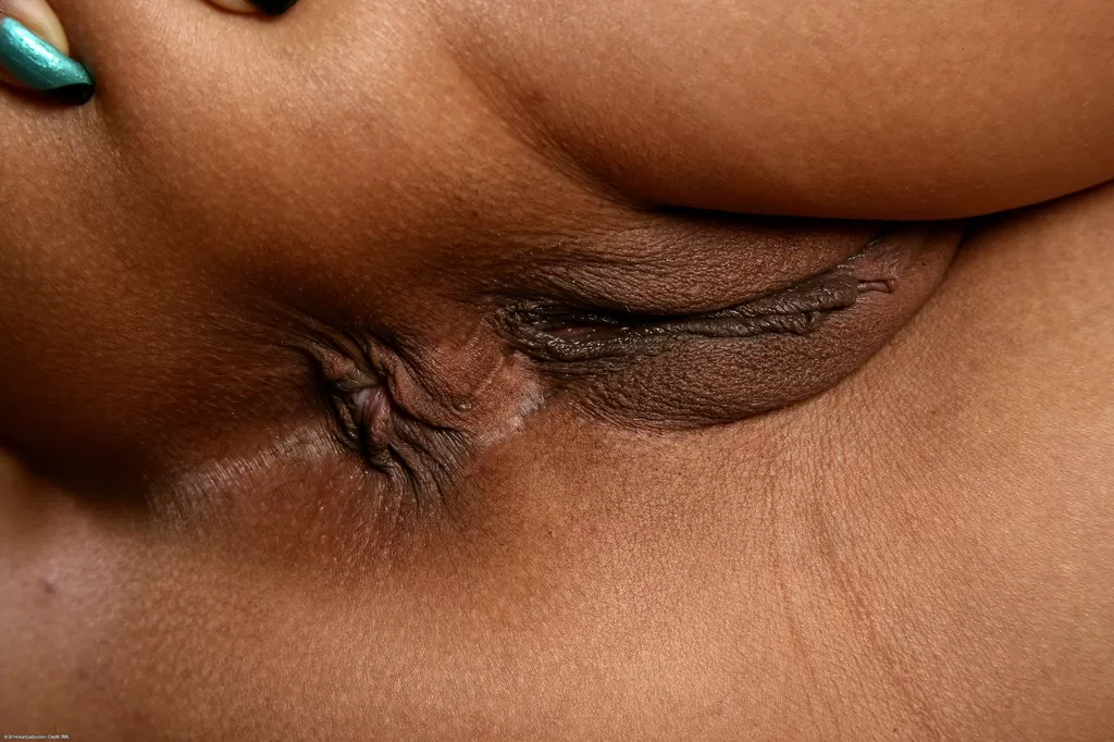 Коротко стриженная негритянка с проколотыми сосками пробует свои силы в моделировании обнаженной натуры