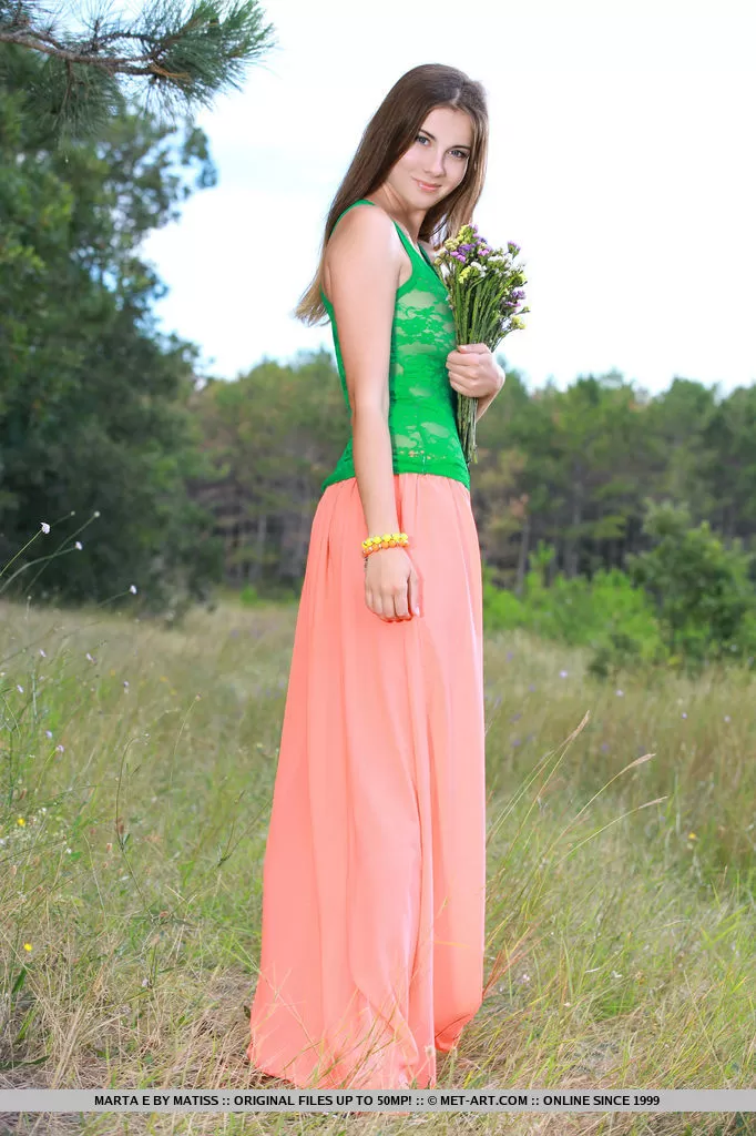 Красивая девушка-подросток показывает свои большие натуральные сиськи, раздеваясь в поле