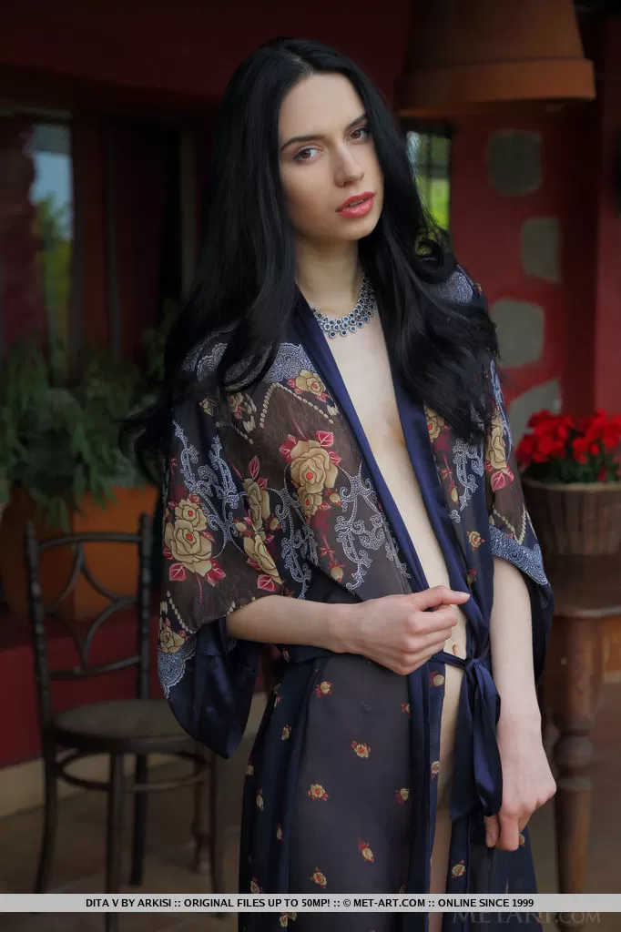 Красивая темноволосая девушка Дита Ви демонстрирует свою идеальную киску в обнаженном виде