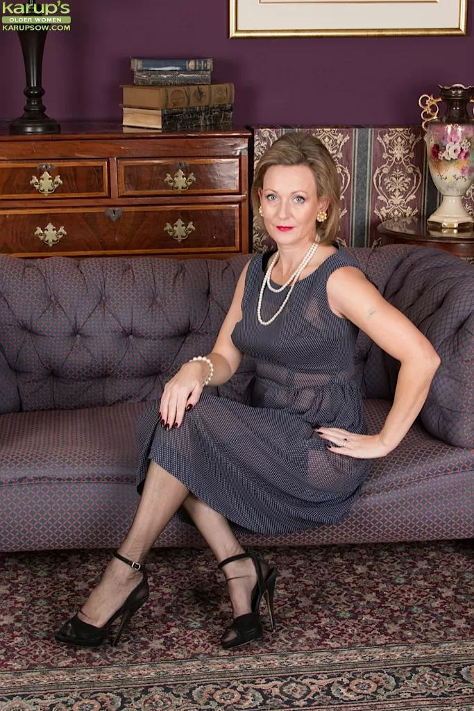 Красотка постарше Хантингдон Смит обнажает красивую попку под платьем
