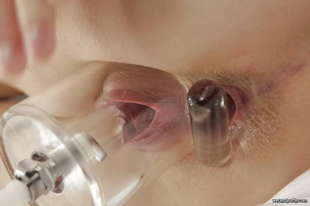 Кудрявая брюнетка модель Гитти накачивает мастурбирующую пухлую киску вакуумным насосом