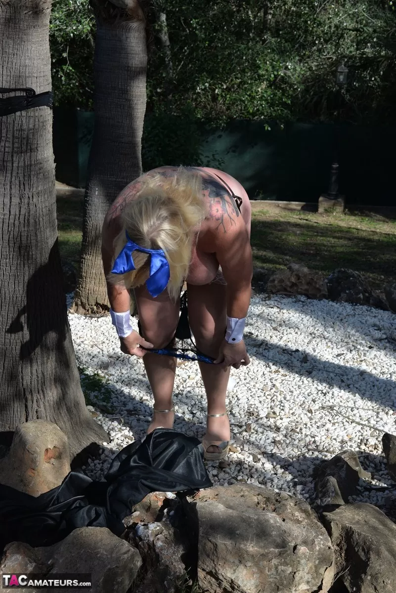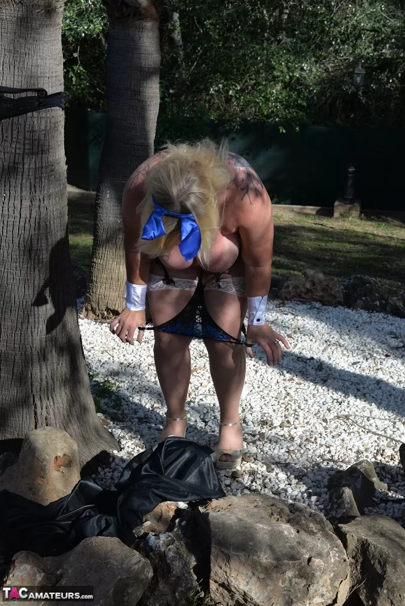 Любительница с избыточным весом Мелоди хватает свою большую задницу, стоя рядом с деревом