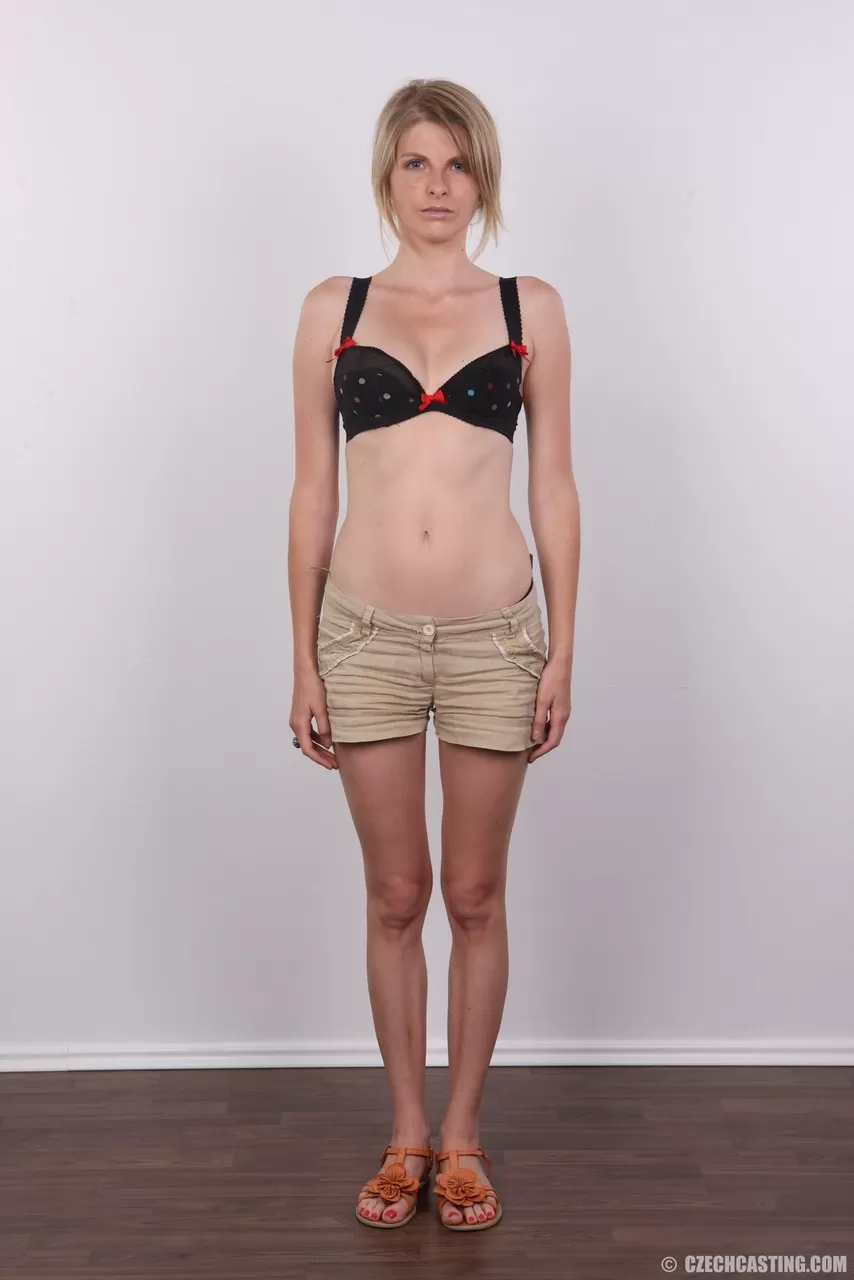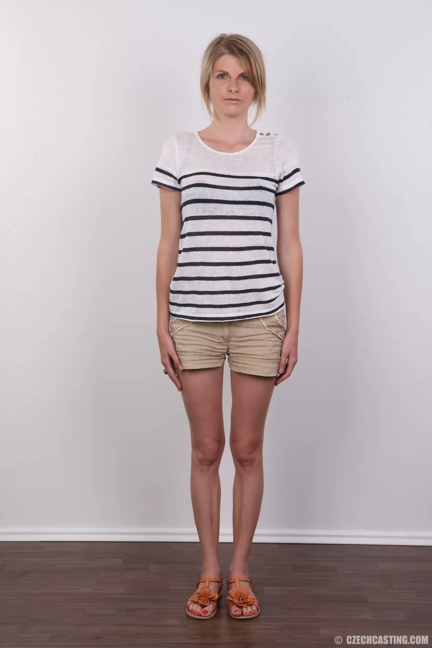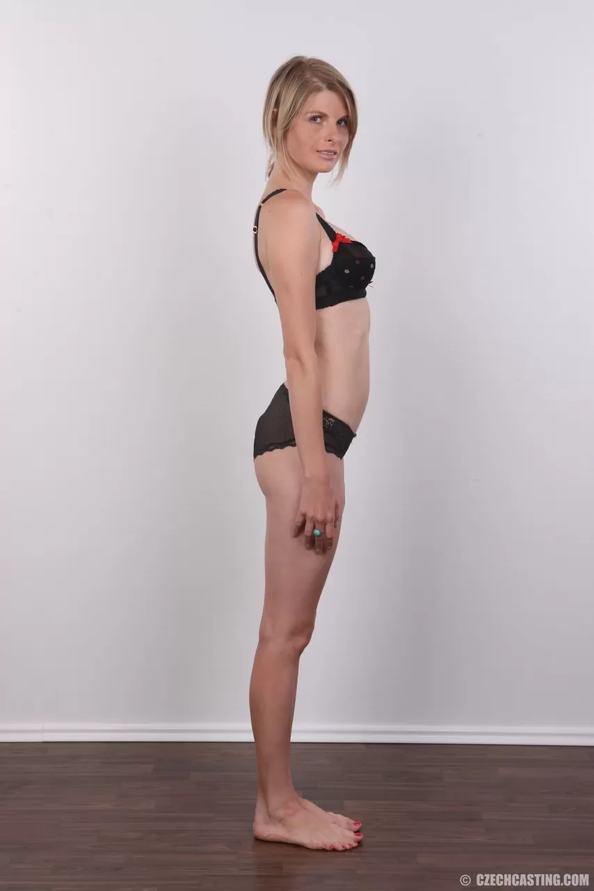 Любительская модель Анастасия стоит прямо, медленно полностью раздеваясь