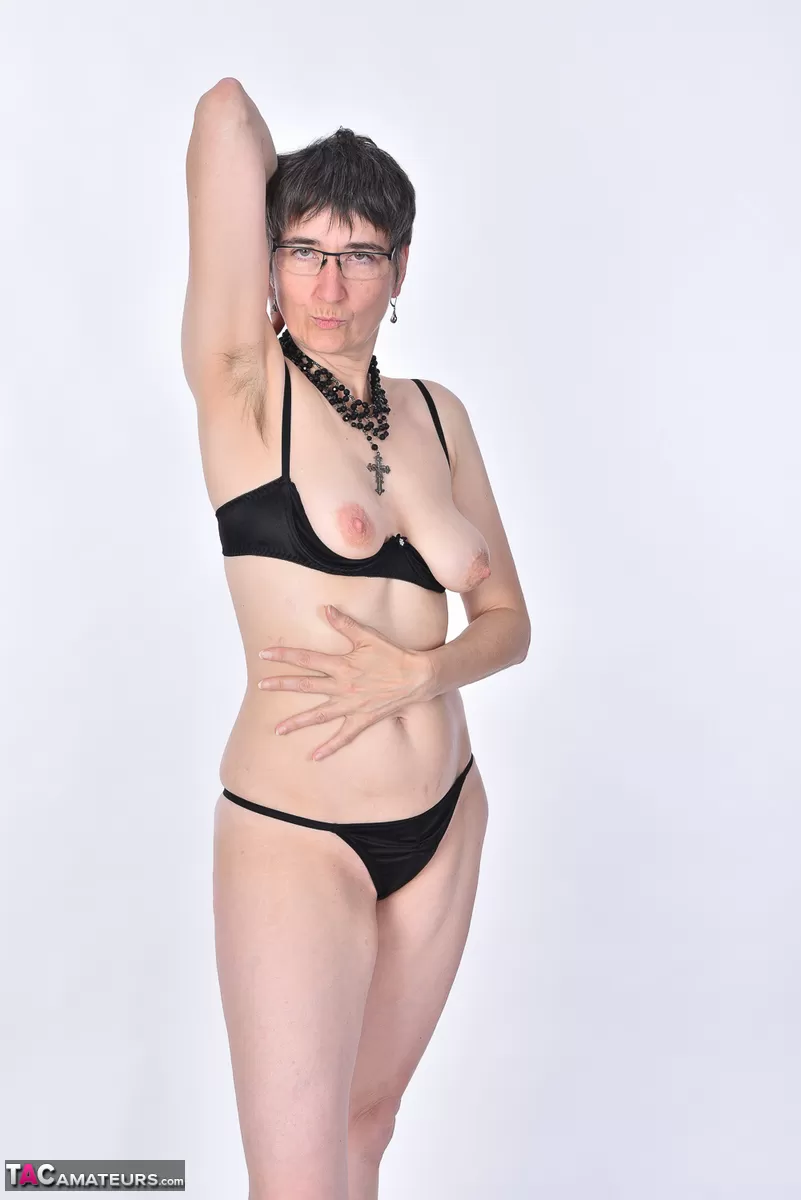 Любительская модель Горячая мамаша щиплет себя за соски после того, как потеряла свои отвисшие сиськи