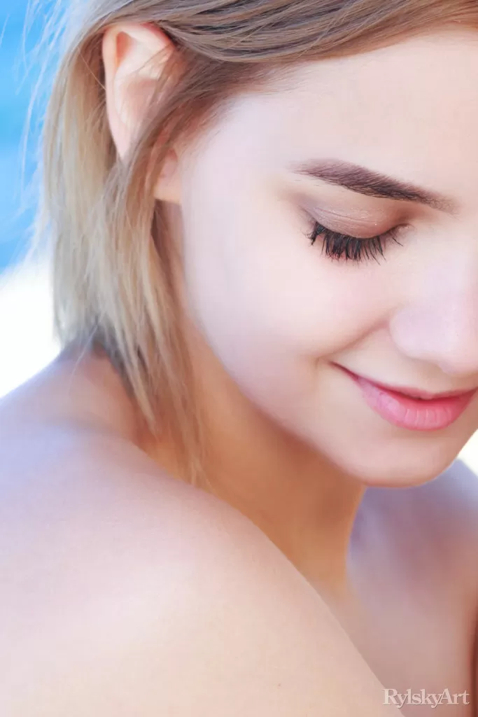 Милая молоденькая блондинка Шанель Фенн позирует обнаженной возле океана