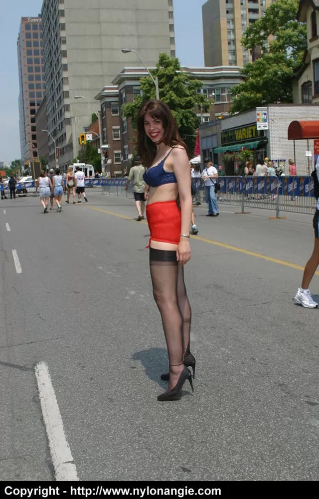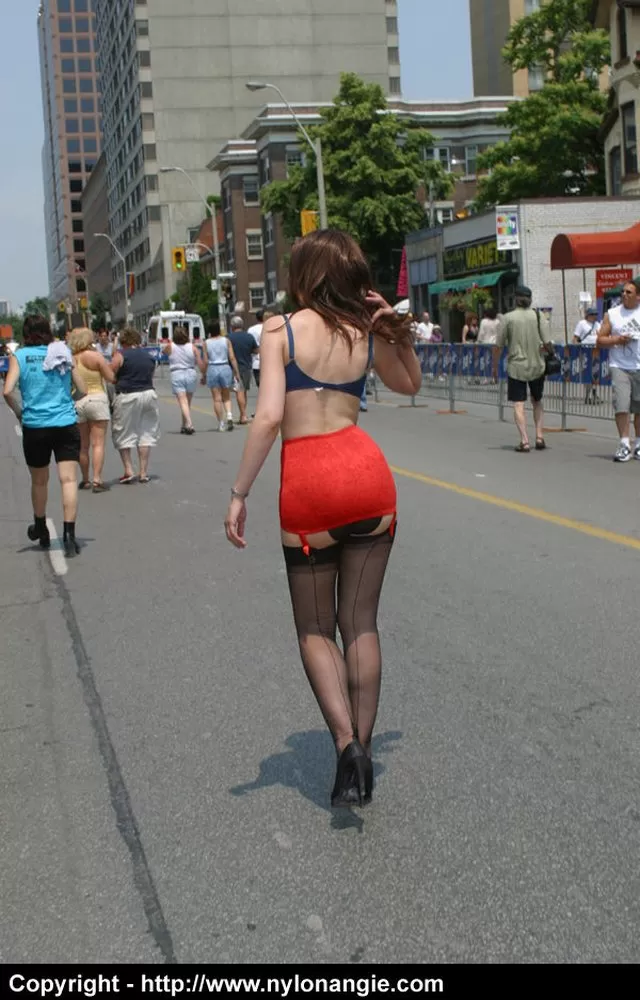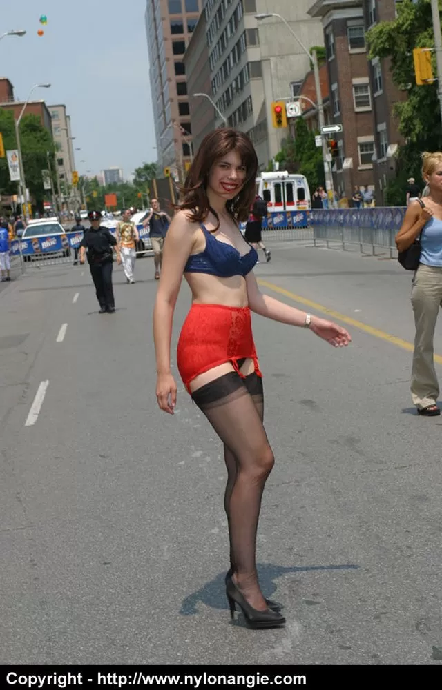 Модель-любитель бродит по людной улице в нижнем белье и поясе