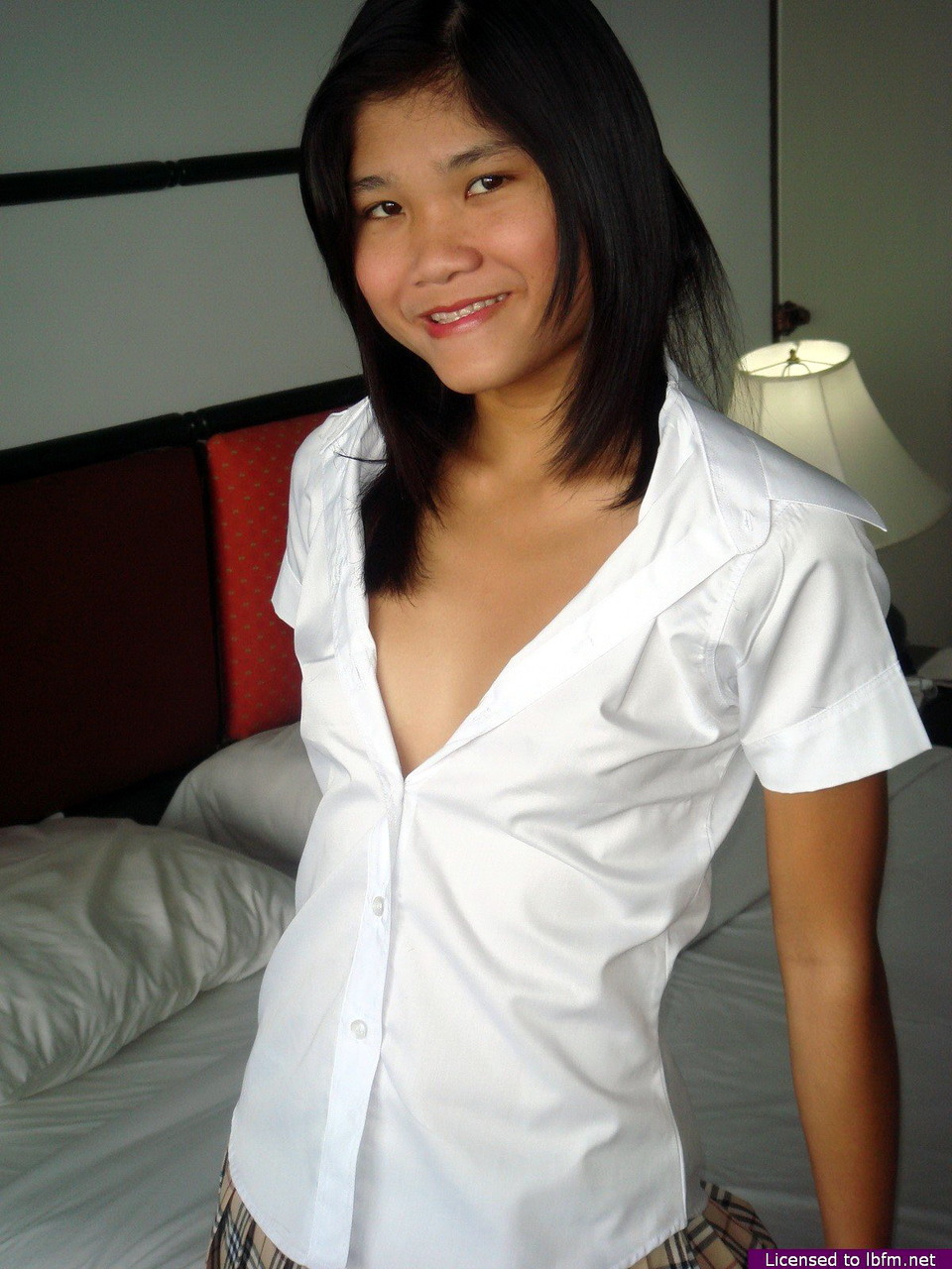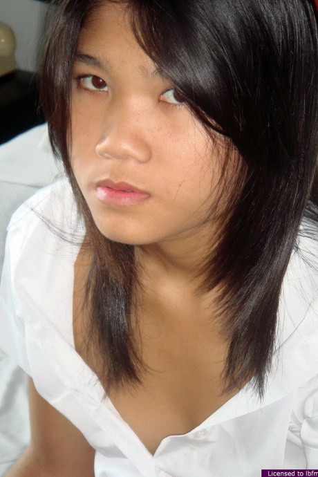 Молодая азиатка Эппл освобождает свою лысую киску от белых хлопчатобумажных трусиков