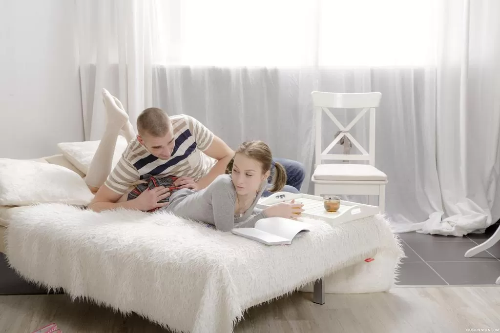 Молодая девушка Дуня Би кричит, когда ее парень проникает в ее девственную попку