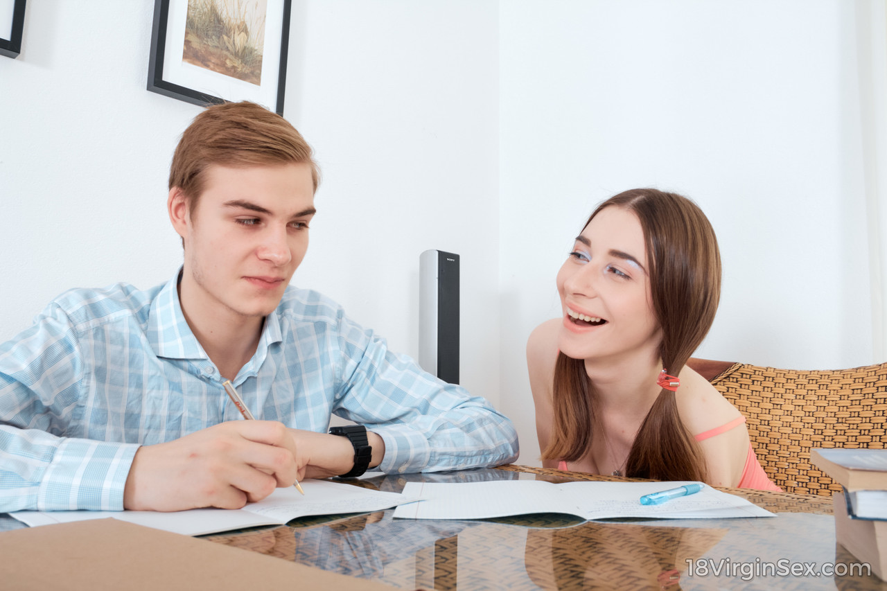 Молодая девушка забирается сверху, чтобы трахнуться, надев белые гольфы до колен