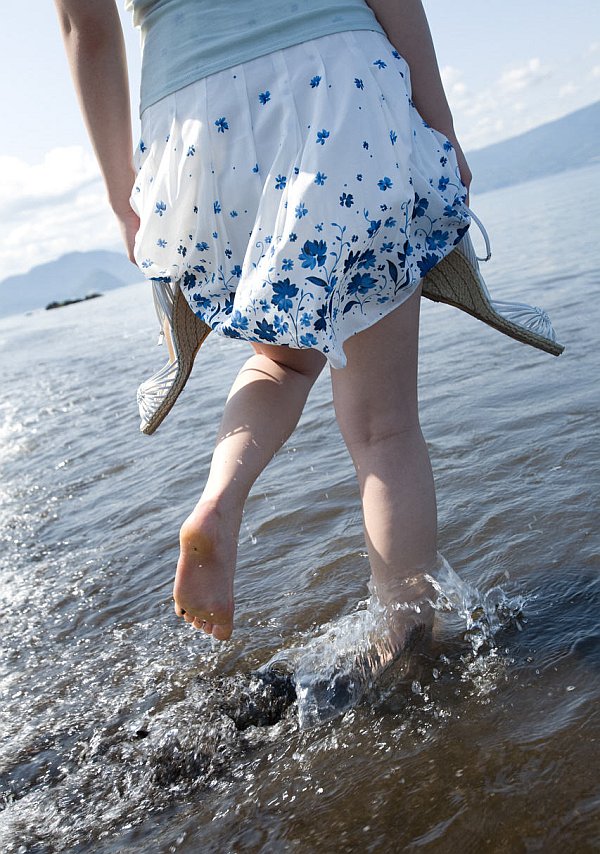 Молодая японская девушка Саки Кото обнажает свои сиськи и попку на пляже