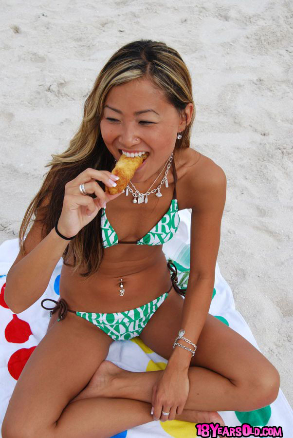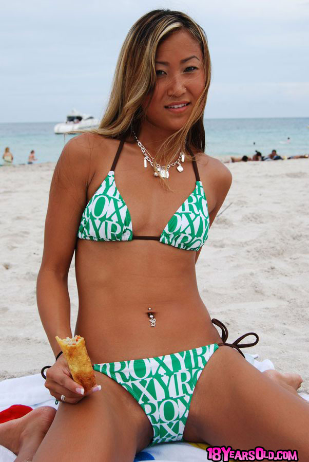 Молоденькая азиатка с крошечными сиськами Тина позирует в горячем бикини на открытом воздухе