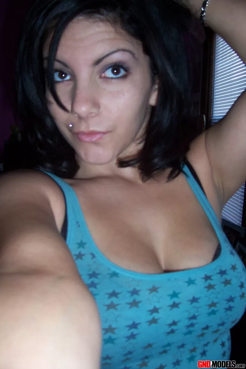 Молоденькая брюнетка Никки делает соблазнительные селфи в безопасности для работы, раздеваясь