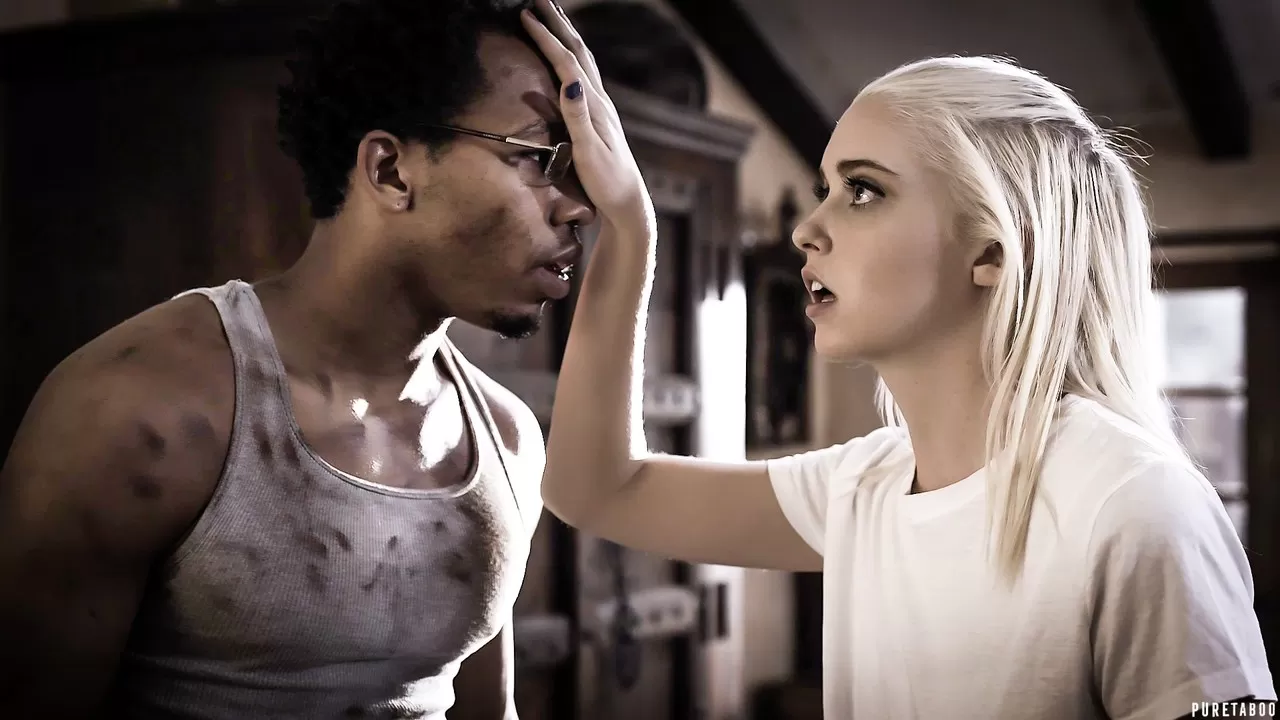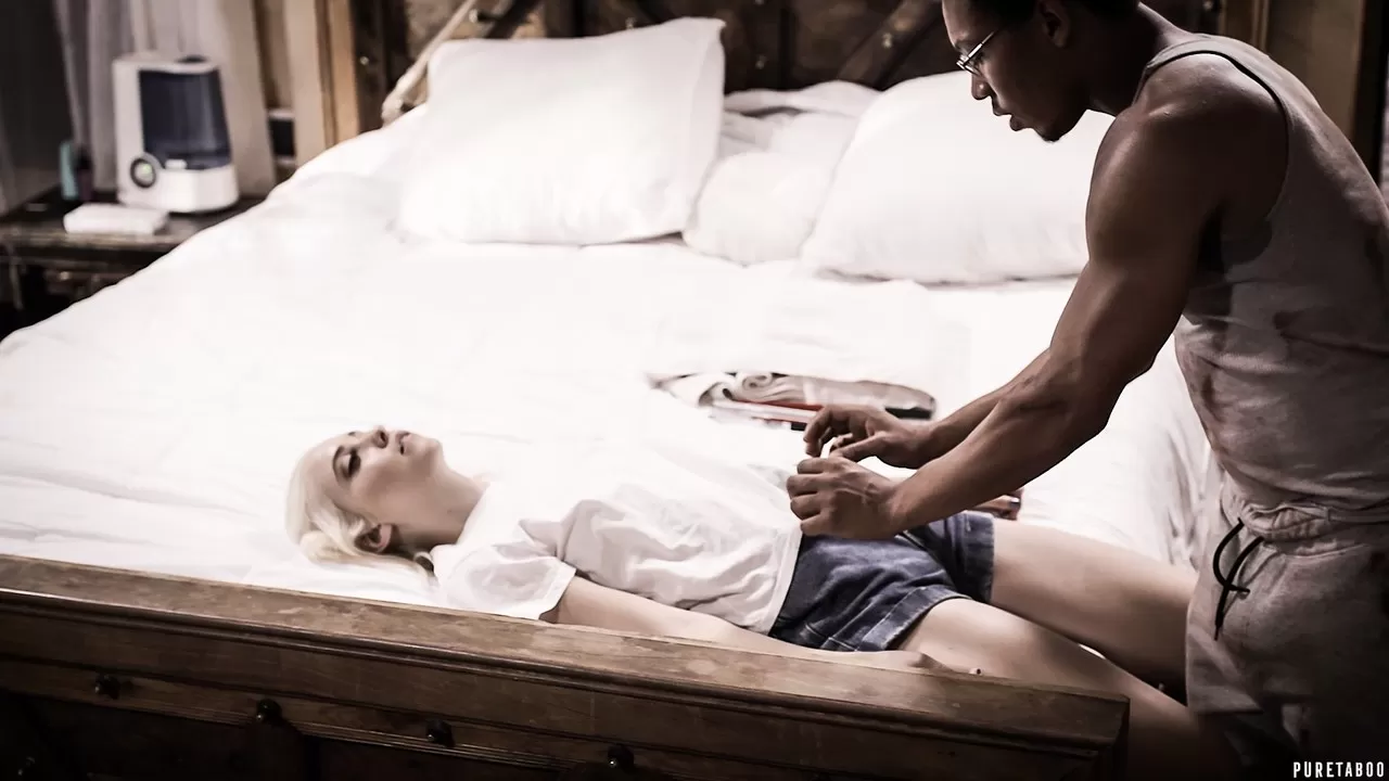 Молоденькая платиновая блондинка Хлоя Черри трахается со своим черным отчимом