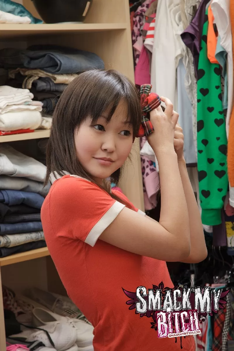 Молодо выглядящая азиатская студентка Алена раздевается догола, заплетая косички
