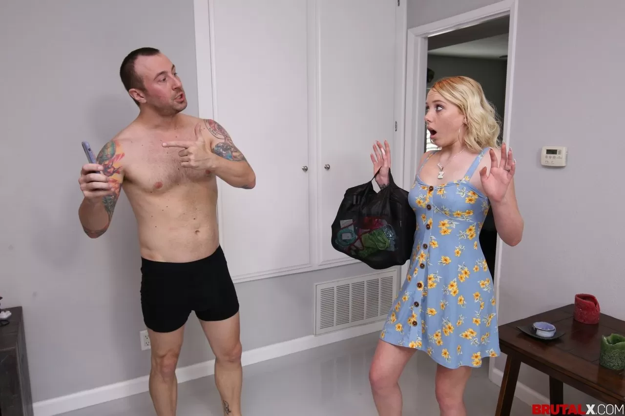 Молодую блондинку Дикси Линн сводный брат принуждает к грубому сексу