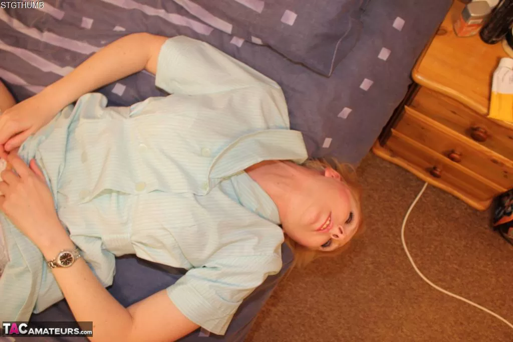 Натуральная блондинка Трейси Лейн встает на колени, чтобы получить сперму после траха от первого лица
