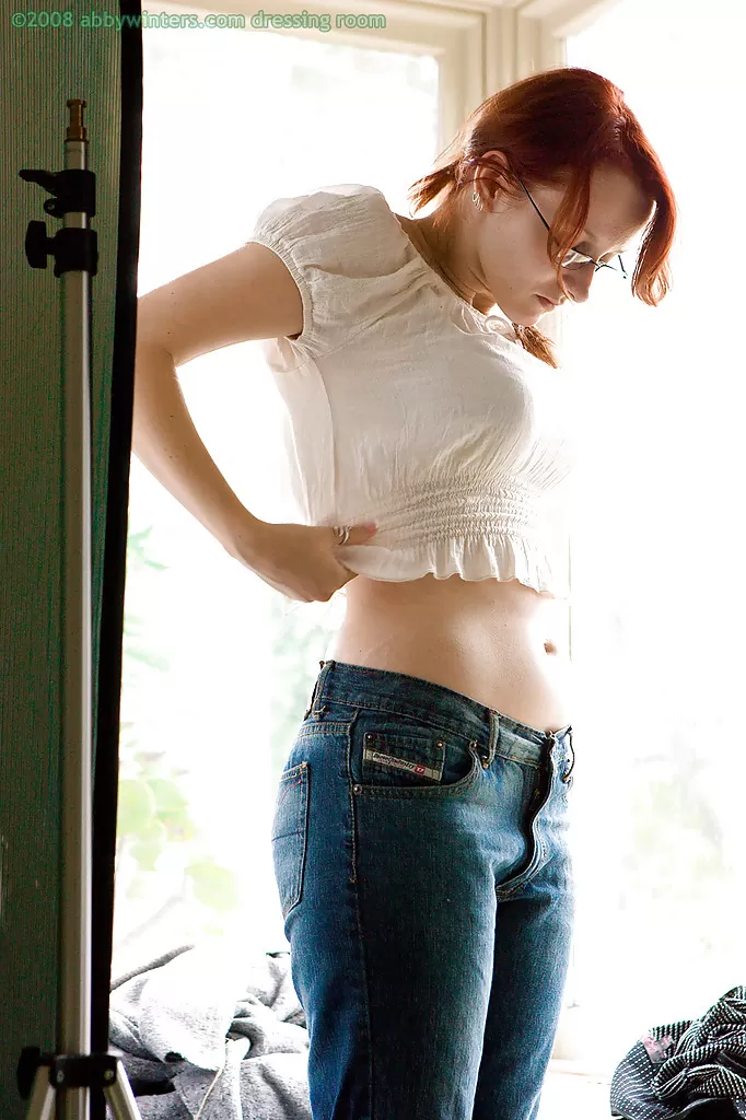 Неопытная Рен одевается после того, как позирует своей волосатой киской в обнаженном виде