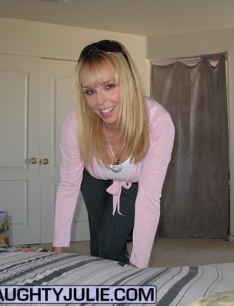 Непослушная блондинка-любительница Джули отсасывает сперму с члена прямо в одежде