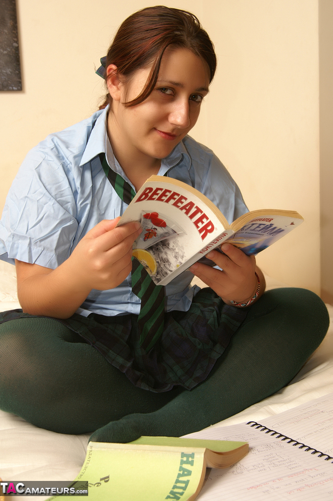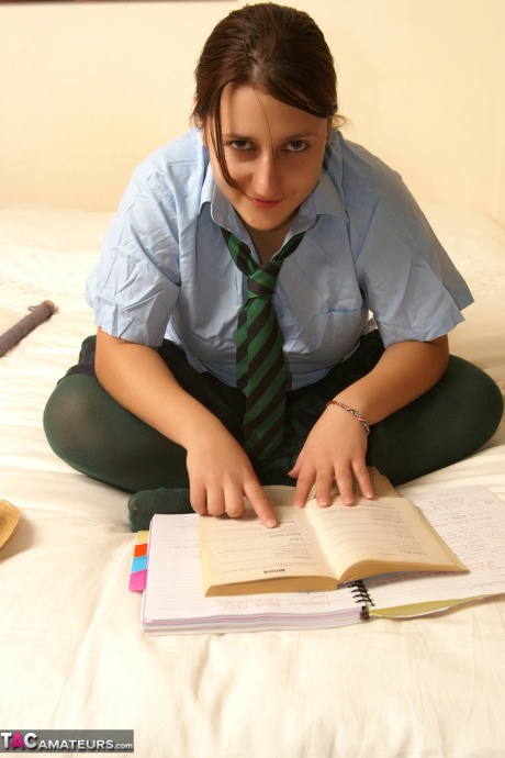 Непослушная школьница Кимберли Скотт читает непристойности и мастурбирует свою молоденькую киску