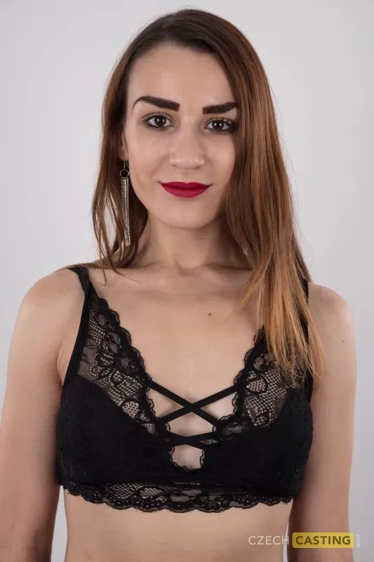 Новичок в черной мини-юбке стоит обнаженной на своей премьере обнаженной модели