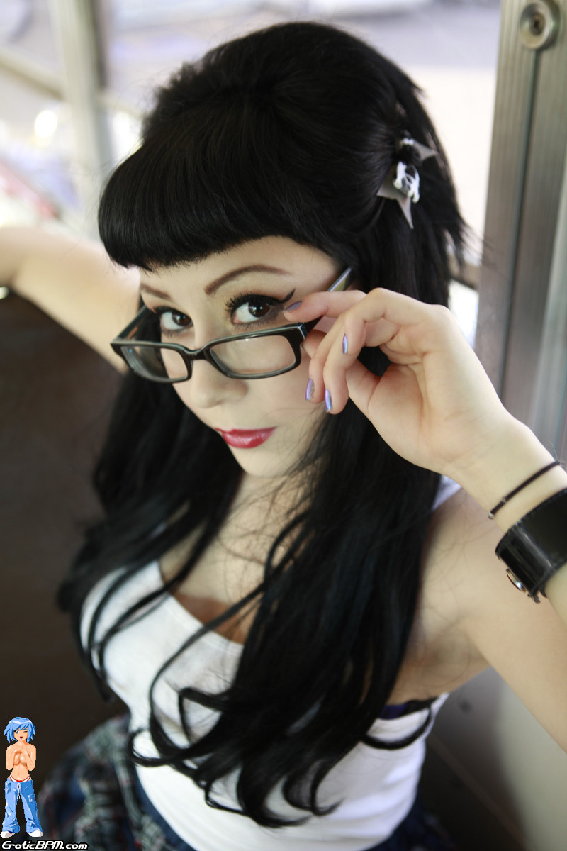 Очаровательная девушка-гот Милая принимает великолепные позы обнаженной в школьном автобусе
