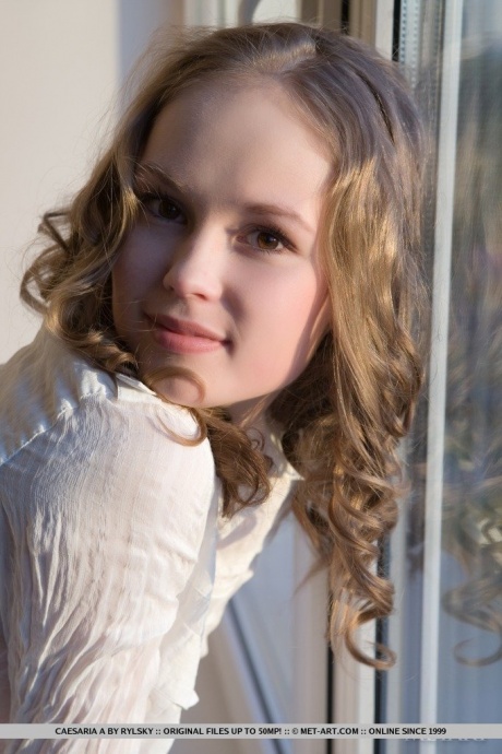 Очаровательная русская молоденькая Цезария А принимает соблазнительные обнаженные позы у окна