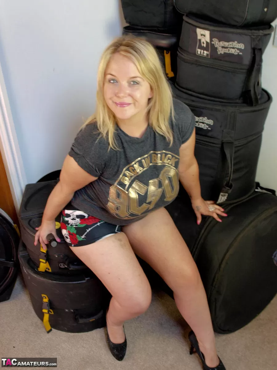 Пышнотелая британка Синди Бюст обнажает свою соблазнительную фигуру в туфлях на высоком каблуке