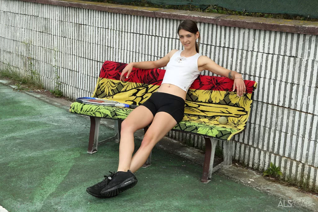 Подтянутая любительница Тера Линк вставляет банан в свою лысую щель после игры в теннис