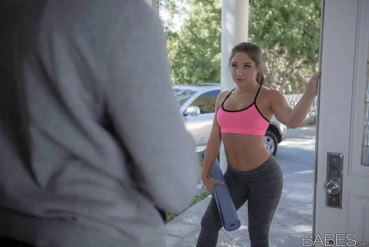Подтянутая молоденькая Абелла Дэнджер стягивает брюки из спандекса для сеанса траха на Би-би-си