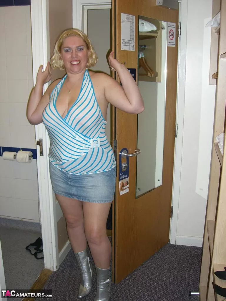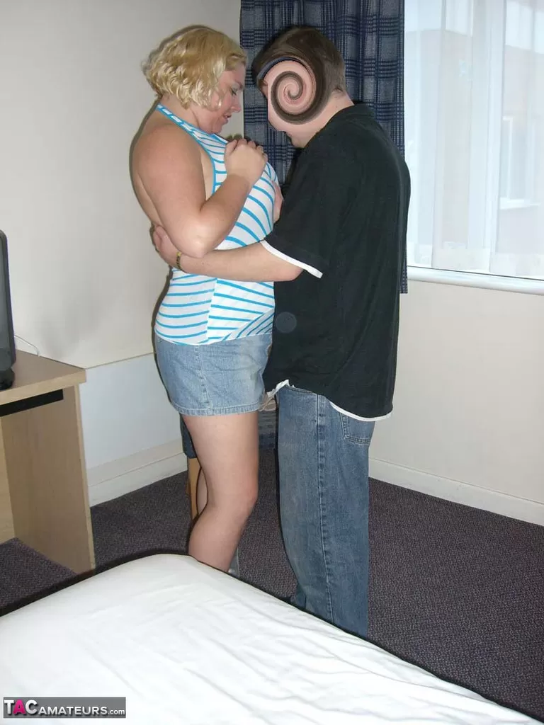 Пожилая блондинка Барби отсасывает член после того, как разделась догола в гостиничном номере